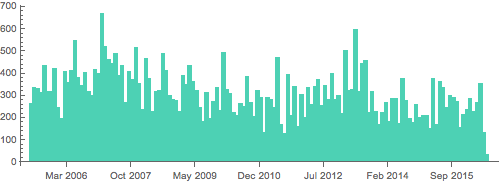 DateHistogram[commitseries, "Day", DateReduction -> "Week",
