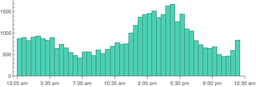 查看每天提交时间的分布情况,以半小时为间隔.