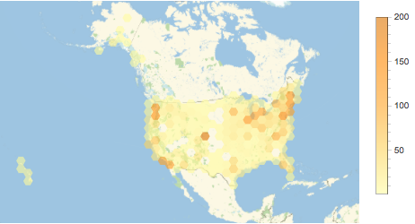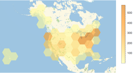 GeoHistogram[locations, ImageSize -> 400, PlotLegends -> Automatic]Out[2]=