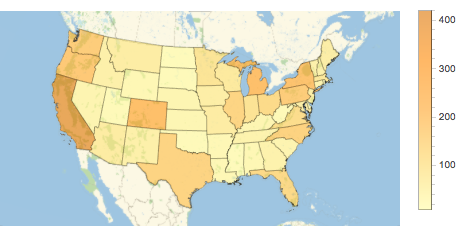 GeoHistogram[locations, "USState", ImageSize -> 400,