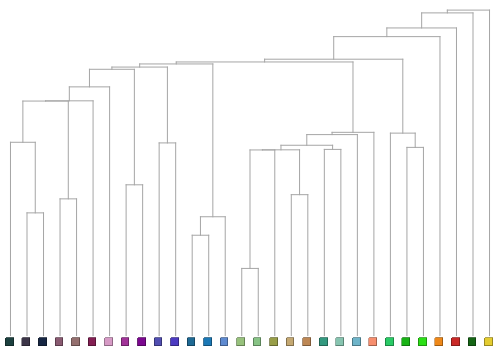 colors = RandomColor[30]Dendrogram[colors, ImageSize -> 500]