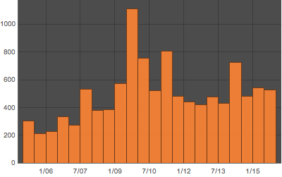 DateHistogram[ed, ImageSize -> 400, PlotTheme -> "Marketing"]Out[3]=