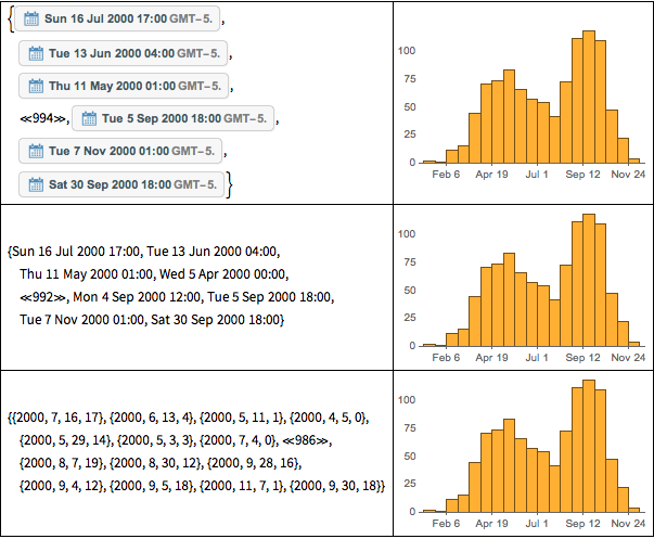 日期可视化函数可接受多种形式的数据. 可以用日期对象、字符串或列表形式来指定日期.