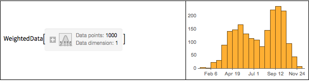 如果数据中含有权重,权重将确定每个直方条内的频次.