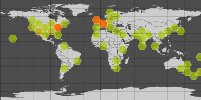 GeoHistogram[birthplaces, 30, GeoRange -> "World",