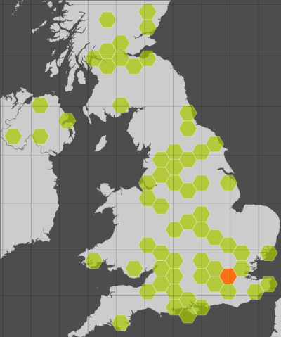 La mayoría es del Reino Unido, así que es interesante delimitar el gráfico a esa región. No es sorpresa que la mayoría sean de Londres.