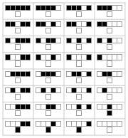 显示五个变量的第 30 个布尔函数的规则,黑色表示真,白色表示假.