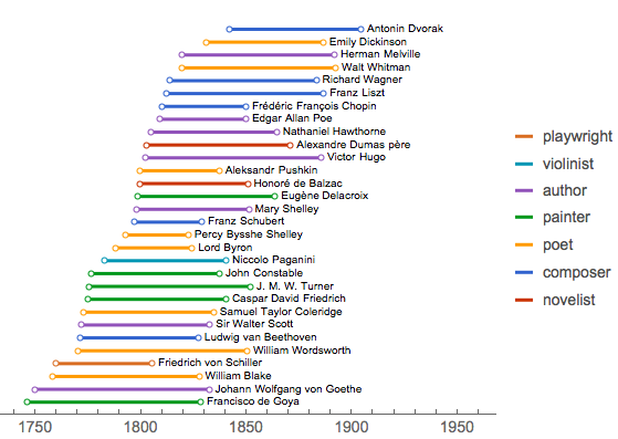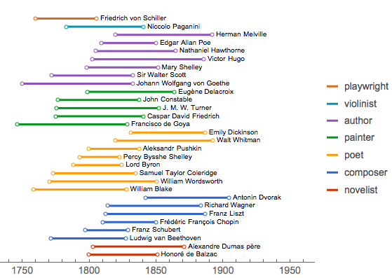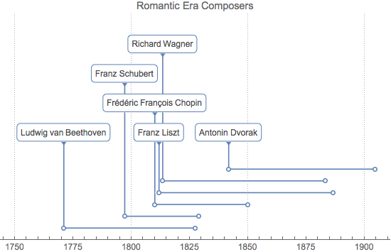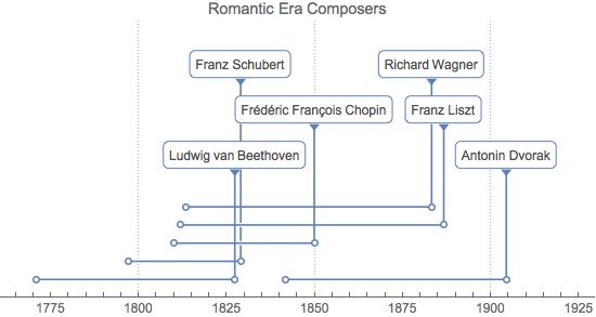 ImageSize -> 550, PlotLabel -> "Romantic Era Composers",