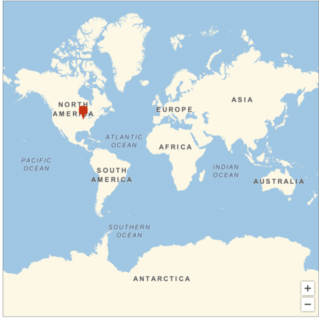 DynamicGeoGraphics[GeoMarker[hq], GeoRange -> "World", GeoProjection -> "Mercator"]