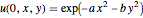 ics = {u[0, x, y] == Exp[-((a x)^2 + (b x)^2)],