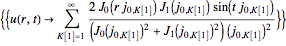 (dsol = DSolve[{eqn, bc, ic}, u[r, t], {r, t}]) // TraditionalForm