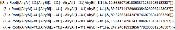 sol = DSolveValue[eqns, y[x], x, Assumptions -> 1 < \[Lambda] < 300];Führen Sie die Eigenwerte des Problems an.