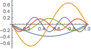 Plot[Evaluate[eigfuns /. eigvals], {x, 0, 1}]Out[5]=