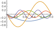 Plot[Evaluate[eigfuns /. eigvals], {x, 0, 1}]Out[5]=