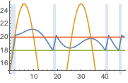 Plot[{res[[1]][t, 1.25, .25], outsideTemp[t], 18, 20}, {t, 0,