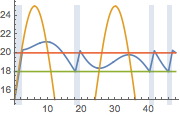 Plot[{res[[1]][t, 1.25, .25], outsideTemp[t], 18, 20}, {t, 0,