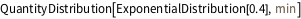 QuantityDistribution[ExponentialDistribution[.4], "Minutes"]