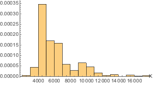h = Histogram[temps, 25, PDF, AxesLabel -> Automatic]Out[6]=