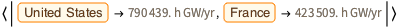 O mapa parecerá diferente se você considerar a produção total de energia per capita. Use CountryData para acessar totais das populações de cada país na lista.