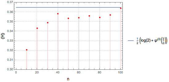 x \[Distributed] CircularOrthogonalMatrixDistribution[n]];计算不同大小的系统的哈密顿样本均值.