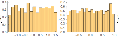 Histogram[#, 20, PDF] & /@ {\[Phi], z}