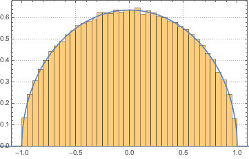 В пределах большого измерения плотность стремится к WignerSemicircleDistribution.