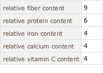 {"edamame", {"TotalFiber"}}, {"spinach", {"Calcium",