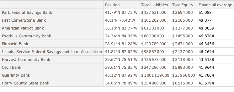 dataSet3[TakeLargestBy["FinancialLeverage", 10]]Out[27]=