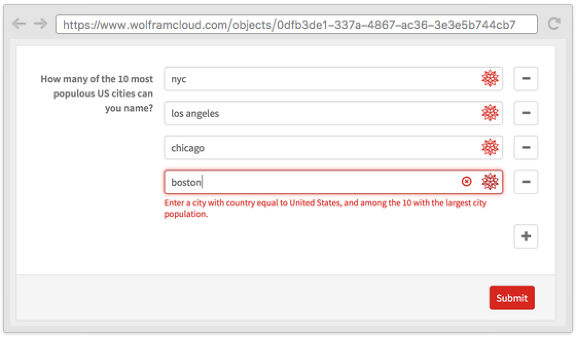 如果任何一个选项不在美国最大的 10 个城市中,表单会显示错误信息.