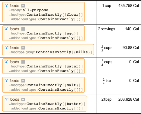 Воспользуемся гибкими возможностями интерпретатора, Interpreter, для того, чтобы преобразовать информацию об ингрeдиентах в вычисляемую семантическую информацию о продовольственных продуктах и количественных объектах класса Quantity.