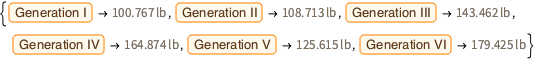 GroupBy[Rule @@@ EntityValue["Pokemon", {"Generation", "Weight"}],