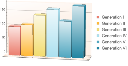 比较并绘制不同世代的口袋妖怪的平均体重.