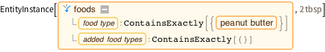"Food", {EntityProperty["Food", "FoodType"] -> ContainsExactly[{