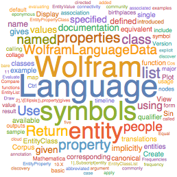 WolframLanguageData 文档中出现词语的词汇云.
