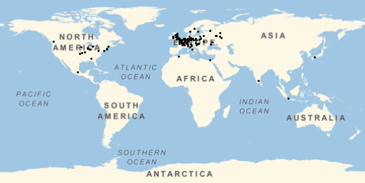 people, {"Image", "BirthPlace", "Name"}], {_, _Missing, _}];在世界地图上显示这些地区和其相关人物.