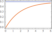 Plot[{current /. {R -> 2, L -> 4}, 0.5} // Evaluate, {t, 0, 6},