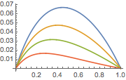 Plot[Table[gf[y, x], {y, 0, 1, 0.2}] // Evaluate, {x, 0, 1}]Out[6]=