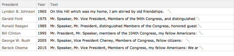 reduceddata = data[All, {"President", "Year", "Text"}];