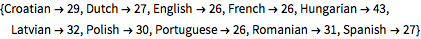 Utilisez LetterNumber pour trouver la position de la lettre z dans les alphabets de ces langues. Elle varie de 26 à 43 dans cette liste.