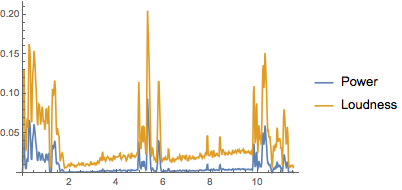AudioLocalMeasurements[audio, {"Power", "Loudness"}, "List"]Out[2]=