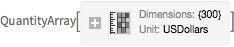 RandomVariate[ParetoDistribution[Quantity[500., "USDollars"], 4], 300]Ein QuantityArray-Objekt ist äquivalent zu einem normalen Array von Quantity- Elementen.