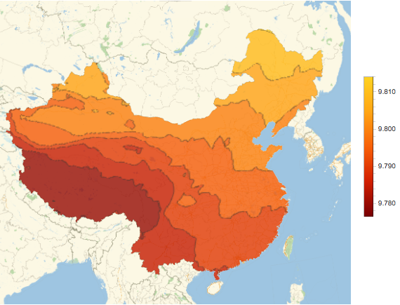 Untersuchen Sie, wie das Gravitationsfeld über dieser Region vom Standardwert von 9,81