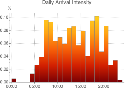 PlotLabel -> "Daily Arrival Intensity", opts]