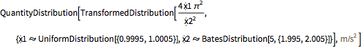 TransformedDistribution[ (2 \[Pi])^2 len/T^2, {len \[Distributed]