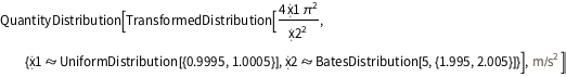 TransformedDistribution[ (2 \[Pi])^2 len/T^2, {len \[Distributed]