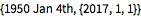 DateBounds[{DateObject[{2015}], "1950 Jan 4th",