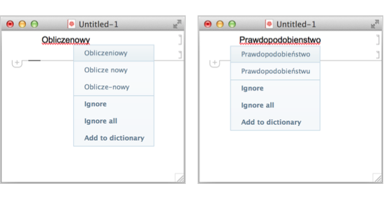 拼写字典中已添入 25 多种语言. 当你输入时,语言会被自动检测到,也可以手动设置.