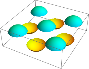 Table[Sphere[2 {Quotient[n, 3], Mod[n, 3], 0}], {n, 1, 8, 2}];