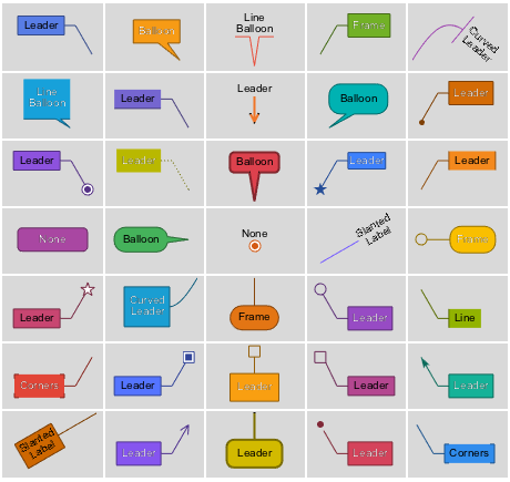 Callout 样式的各种范例. 标签给出了已命名的 Appearance 的名称.