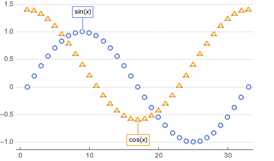 ListPlot[{Callout[Table[Sin[x], {x, 0, 2 Pi, Pi/16}], Sin[x], Above,